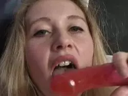 Blondine mit gefakten Hupen macht den Kehlenfick