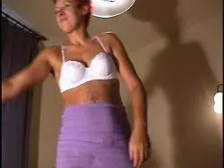Die rothaarige Frau mit den mini Brüsten wird beobachtet.