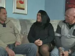 Zwei farbige Kerle und ein bleiches Babe poppen wild auf der Couch