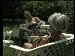 Granny reibt sich im Freien die stark behaarte Fickspalte