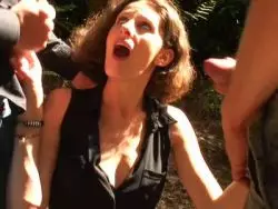 Der Fickhengst spritzt ihr eine große Ladung Schwanzsaft auf die dicken Brüste