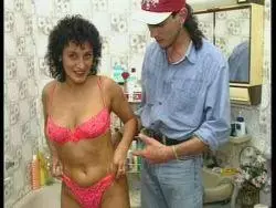 Scharfes Luder mit behaarter Fotze lässt sich in der Badewanne poppen