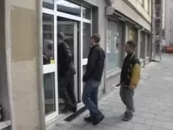 Nach der hemmungslosen Pornoshop-Orgie wird die schwanzgeile Verkäufertussi vollgespritzt