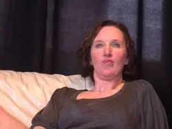 Mit einem Gummischwanz fickt sich die untervögelte Oma auf der Ledercouch selbst