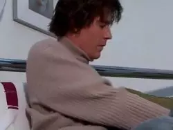Er wichst seinen Schwanz, während sie seine Eier verwöhnt und spritzt ihr ins Gesicht