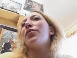 Die blonde Ehefotze mit den fetten Titten wichst ihre Möse